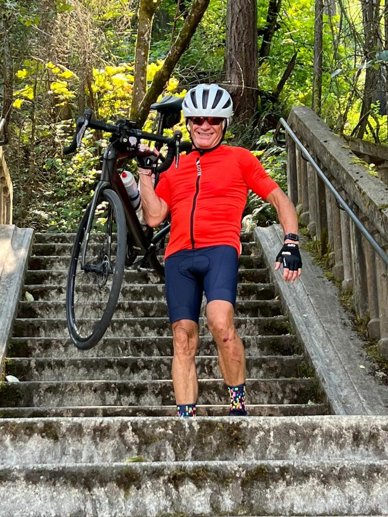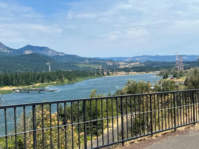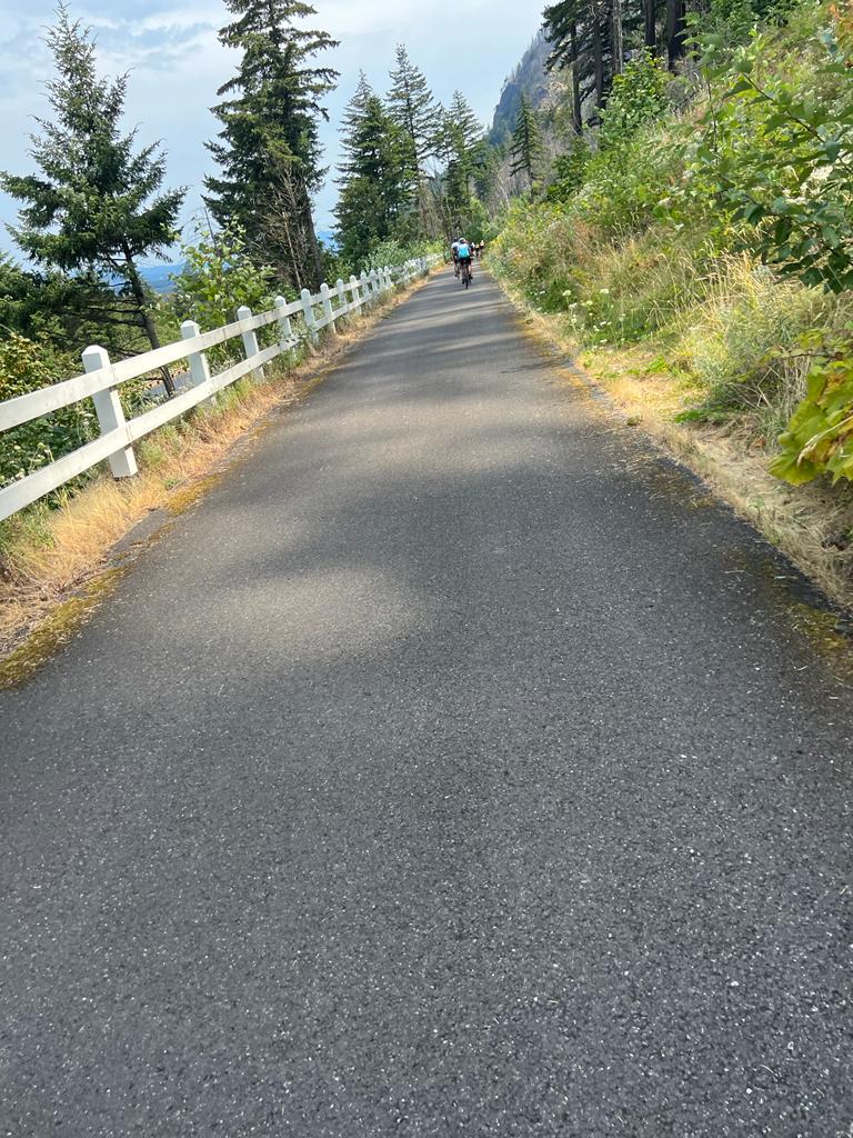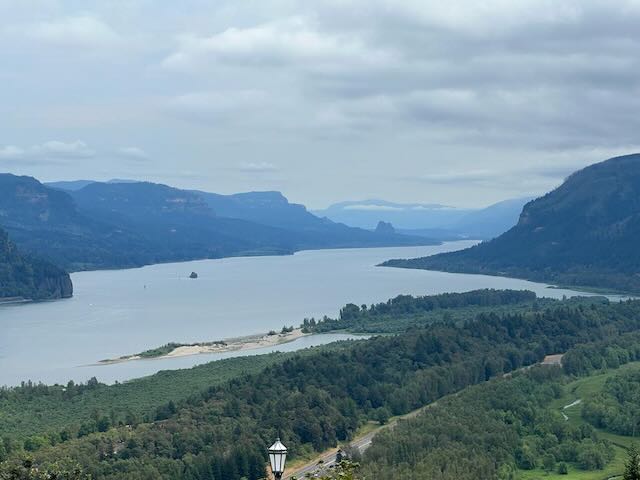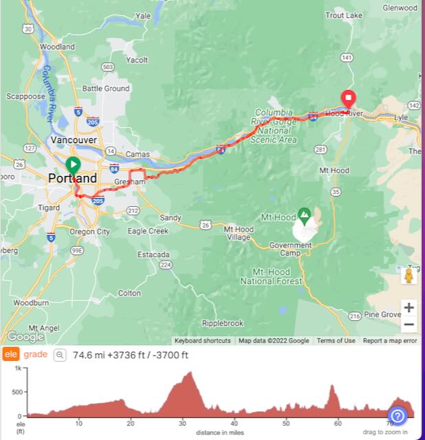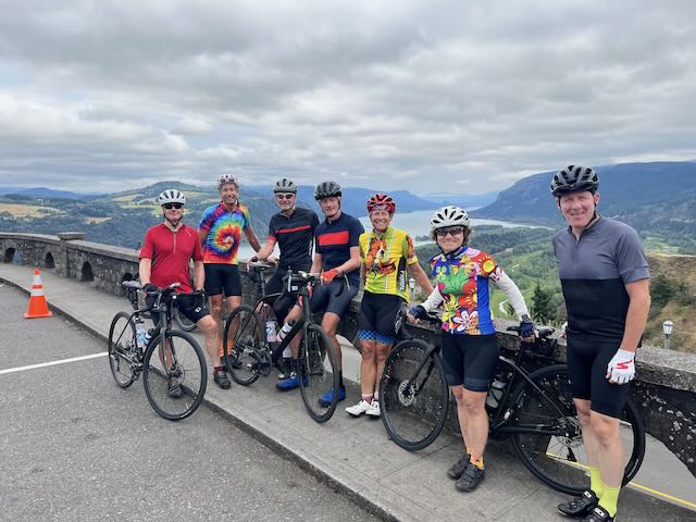 We were all a little relieved to have just the 75 miles today. It was promised to be a nice ride down the gorge with fantastic views of the Columbia river as well as the odd dragon and we were not disappointed. Today was the that we were split into groups with separate start times. The goals were not to clog up the roads with the peloton and to arrive at the lunch stop at about the same time. This seemed to work pretty well but there might be some adjustments going forward as we all adjust to the workload. My little group of four pulled me through efficiently and safely. We did burn a pack of matches on a pretty short but steep climb and we were put in our place by guide Megan who glided up and around us to the summit making us feel our years to go along with the leg burn. Good on her it was a joy to watch such grace and style.