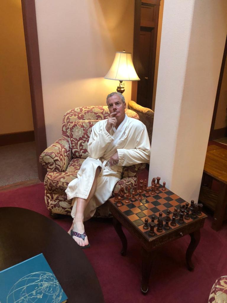 What I will remember about this day is the glorious descent in the morning and the Hot Climb Day (did I mention that yet?). Also good companionship at dinner and hearing about very altruistic activities by my fellow riders. Inspiring. I definitely need to up my retirement game. Oh and also this is my turn to sleep in the “guide motel”. These small towns cannot host all of us in one hotel so I am comfortably residing in a nearby motel. Very clean and comfortable. If you ever wondered what happened to your grandmother’s red velvet plush blanket, I may have a lead for you.