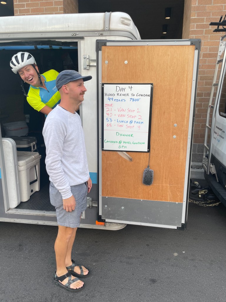 Well another day in the books. What a day it was too! The first 25 miles were through the forest alongside a state park with ever better views of the Columbia river. I’m going to miss that river. We had an early start to avoid as much of the heat to come as possible This made for a beautiful morning to enjoy being on two wheels with good people. It occurred to me today that after riding and training my usual routes, each day here brings a new experience to enjoy on a bicycle. I am most grateful for this opportunity.