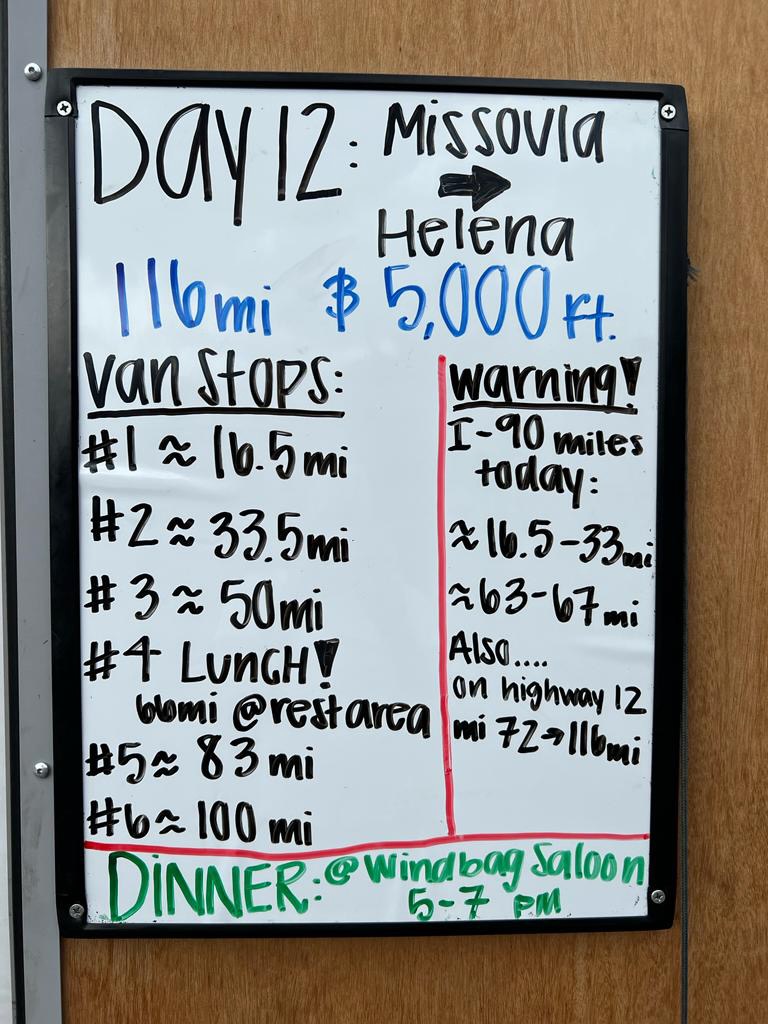 Ho Hum another day another Century Ride. I felt really good after the rest day bit apprehensive after looking at the work to be done over the next week as we work our way across the great state of Montana. I’m happy to report that we arrived uneventfully in the capital, Helena. I’m happy to report that the sun, wind and temperature all were in our corner throughout the day and the miles, all 116 of them, flew by. Well at least without too much agony! We were also joined by some family visitors all of which were very nice and respectful to the group. Kind of like when one is at a party and listens to a guest pontificate on why the earth is flat. That’s the kind of look we usually get. I am happy to report that most seemed to think that their relatives were not purposefully being harmed by the other riders as all appeared at least reasonably well.