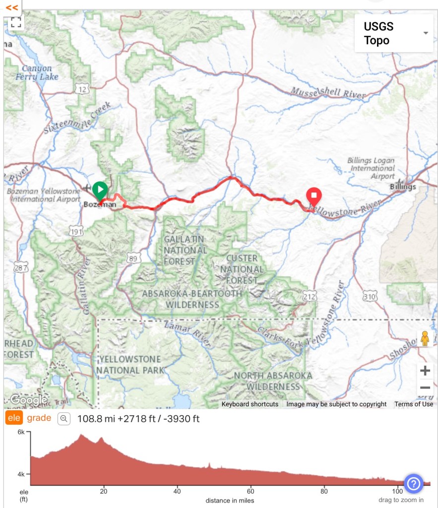 As is the trend, the cool Montana mornings and beautiful scenery make for a good start to the day. After the first 24 miles though we returned to the Interstate 90 corridor and were never too far from the sounds of trucks and more trucks. There was a nice hill just before Columbus and a decent descent to follow.