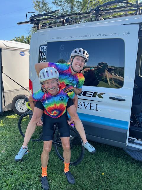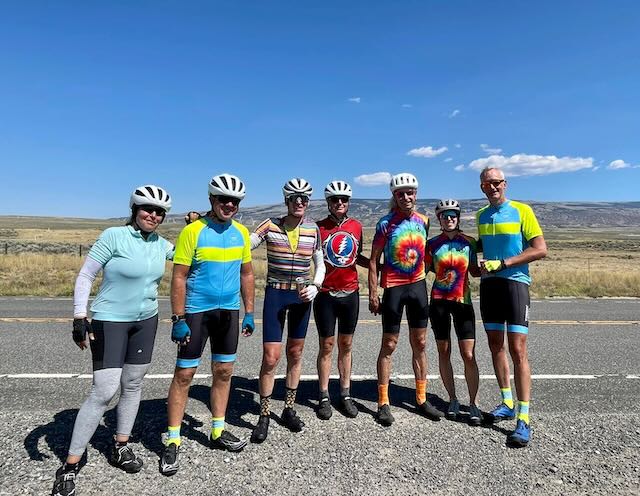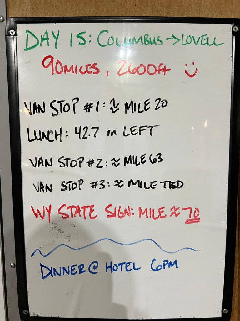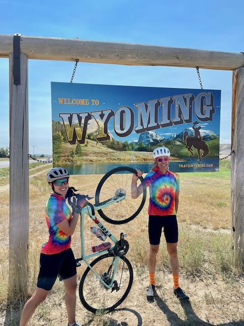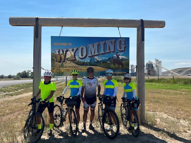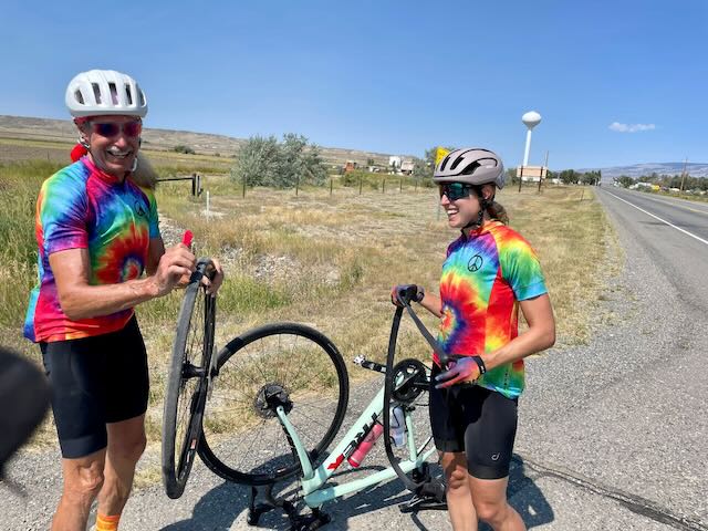 Just after lunch we hit a mild climb and a not so mild headwind. Our little group of four grew to six a we picked up a couple of lone riders who hot stuck solo riding in the gusty conditions. The 18 miles to the next rest stop seemed to stretch on forever. Later I found out that this section always greets the riders this way. Welcome to Wyoming! A bit later on the wind and our course shifted making the pedaling much more tolerable. State signs are a highlight and we took many good photos at this one. Taylor was unfortunately the Flat Tire Princess today and received two punctures in the last 20 miles. We coasted into the hotel towards the end of the group but in time for showers, yoga and a really nice picnic dinner. Taylor’s friend joined us for dinner and then unfortunately they both left for Billings shortly after. Weird. My daughter is going back to work tomorrow and today was my last official day with my group of 31 years. Ride on!