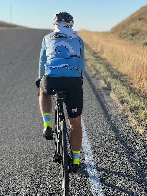 Hello and welcome to day 15 of the GREAT crossing. My daughter, Taylor, joined us last evening and was up and ready to go this morning . I on the other hand required a little coffee to match her sunny disposition. Our staging area was under the awning. If one wasn’t awake by then, the gentleman starting his Harley under the awning certainly got ones attention. Early start for him as well. Nope. Just left it idling with exhaust pointed at the crew. Also cranked his tunes. Whatever his intentions were they “backfired” as we carried on with our launch activities with not a little dancing. I think there might be a sociology paper here somewhere. Did his father yell at him during his first bike ride without training wheels? Never received any attention from his mother? Anyway the Lycra clad warriors declined the call out. Probably a good thing as the heaviest of us doesn’t exceed 190 lbs.