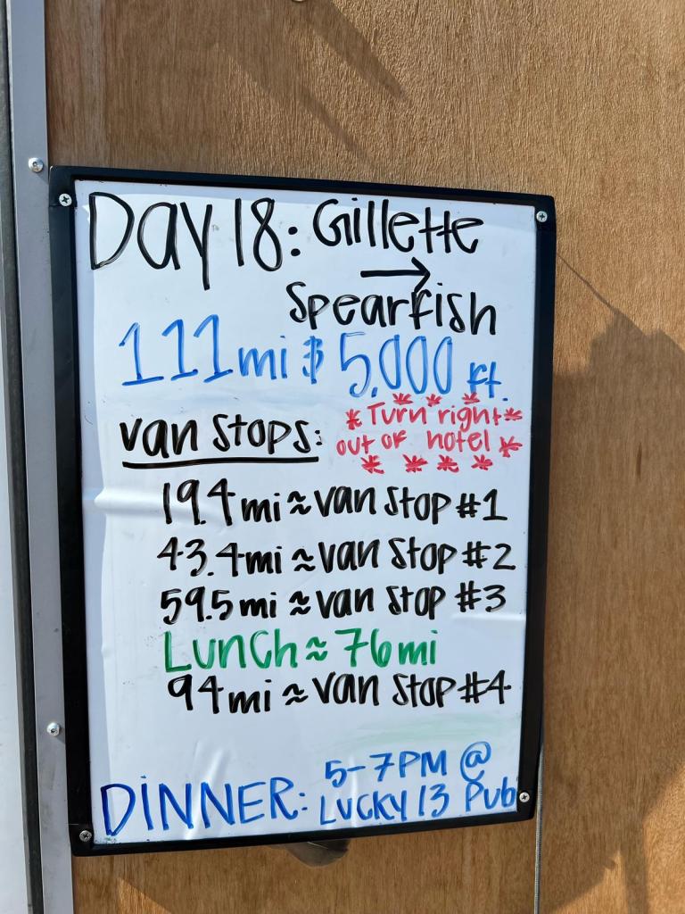 The rest of the day was a solo day until I caught some stragglers about 10 miles from the end. A long day in the saddle but well worth the extra efforts. Tomorrow a shorter day and then a well deserved rest day in Rapid City. What will tomorrow’s ride bring?