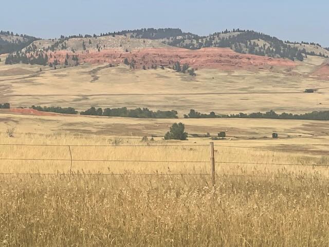 At the first stop, we caught up with Dan, Ian and Russ. After a very brief rest we departed again, this time with Dan and Russ joining forces with us. We left Russ sitting with his helmet off. To me he looked surprised that we were headed out but Ian reassured us that “he wants to go at his own pace”. Ian is from Manchester, England. We have as much trouble understanding him as he has understanding us. In retrospect we should have confirmed with Russ who really “wanted to keep up” to avoid getting caught in the wind alone. Blessedly about 5 miles later we turned south into the foothills with a tailwind and close to leaving eastern Wyoming.