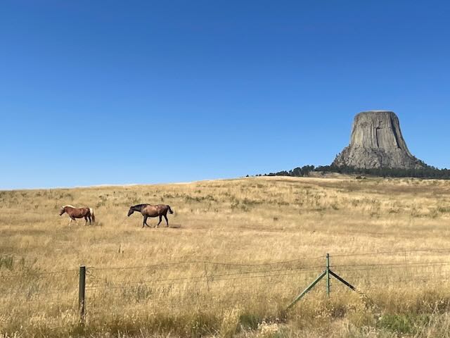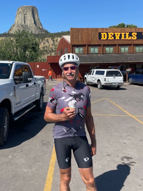 Understandably there was a lot of interest to see the feature. One could see it in the distance from our route. Another option is to ride up the road to the Tower to a viewpoint about 3 miles from our route. The least wise option because it required adding another 13 miles and almost 1000 feet of elevation to a day that was already well over 100 miles. This foolhardy route took one to the very base of Devil’s Tower. This of course was the route that I selected because, well, Huckleberry Ice Cream was sold at the trading post there. From a cycling standpoint it was a route to die for as one descended on new pavement with a curvy descent and the Tower almost always visible on the left side through the cool pine forest.