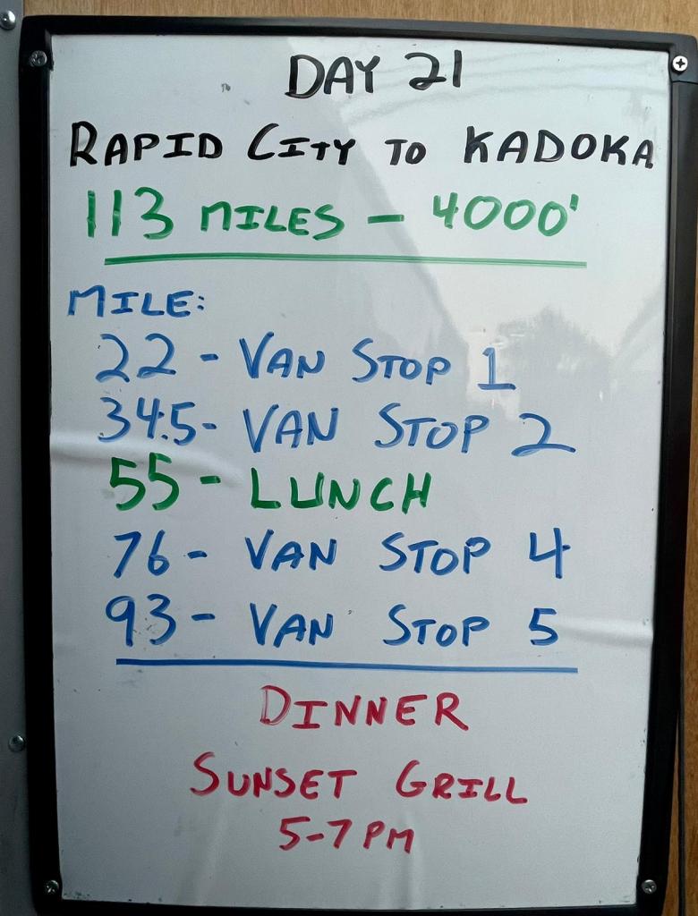 After leaving the park, we limped into Kadoka and essentially took over its only hotel. Next door we dined at what must be THE only combination steak house and Subway Sandwich shop. I’m eating a lot of burgers with red meat in the smaller towns. Trying to stay with what they know! Tomorrow another scorching century but without a National Park to distract us.