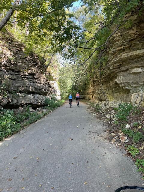 The morning started cool and we are starting to wear our sleeve and leg coverings to go along with our vests. The weather quickly warms though and the wind is more of a breeze than a gale. In other words perfect fall cycling weather. After lunch at the half way point, we jumped on to the Root River Trail. This was my first time on a trail constructed on an old rail trail. When I say constructed I mean paved and with well maintained bridges. The little towns one passes along this trail are very bicycle-centric. It was a pleasure to be away from the passing automobile at least for a little while.