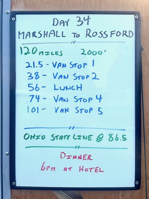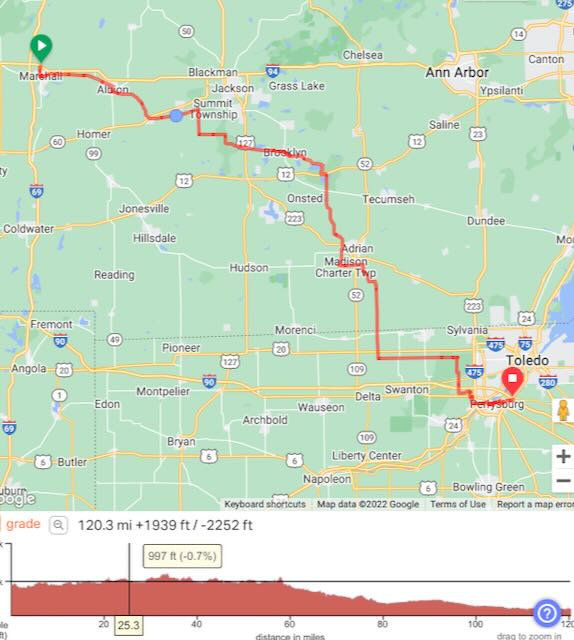 This is familiar territory for me as we spent a part of every summer visiting wife Susan’s parents who lived not 15 miles from where I am right now. But 120 miles is 120 miles and it was nice to finish and get some rest. Late start tomorrow as we cruise into Oberlin Ohio. The Gibson’s Bakery vs Oberlin College lawsuit was settled recently so that made for some interesting dinner conversation.