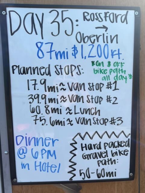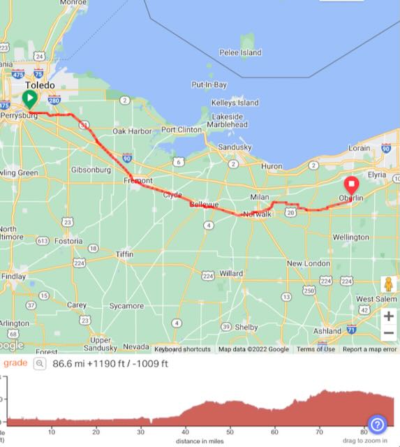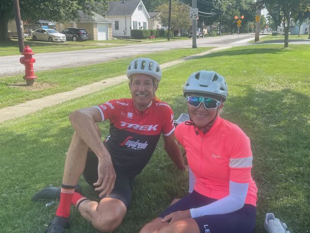 Friend Dale and his lovely wife Wendy joined us at dinner tonight. We haven’t spoken in person since the summer of 2019 and I was very glad to see them. He will be joining us for a ride through his beloved Northwest Ohio tomorrow and promises to add some interest, miles and elevation to our scheduled route. Oh Oh.